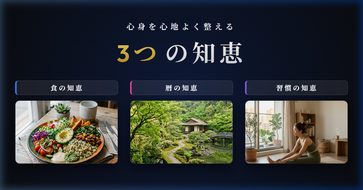 今回は、過去にご紹介した記事の中から、そんな「なんとなくの不調」を優しく解きほぐし、自分自身を丁寧にメンテナンスするための3つの知恵を厳選しました。